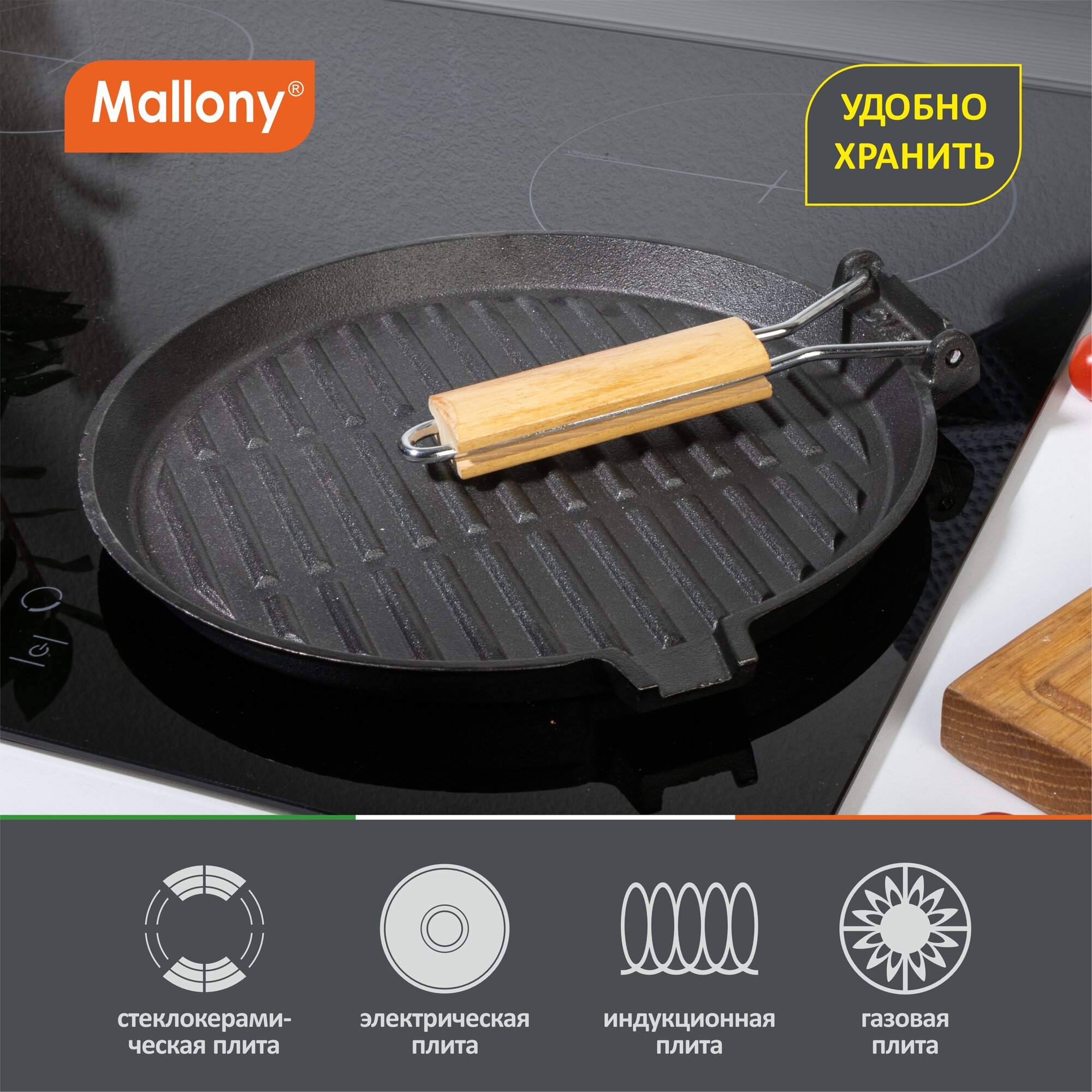 Сковорода-гриль чугунная с деревянной складной ручкой Mallony PADELLA, диа 26 см,тм