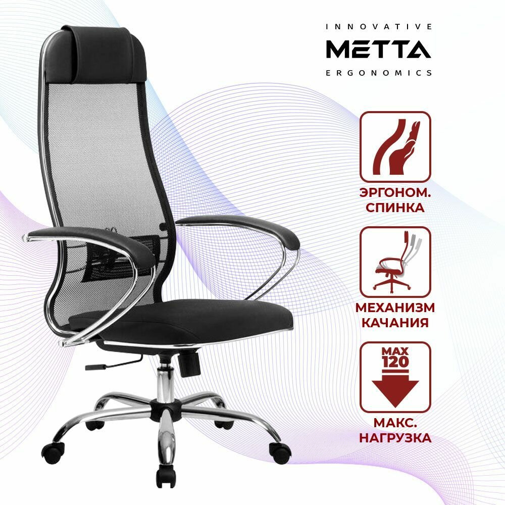Кресло MT-МЕТТА-16 MPRU сетка/кз чер хр. подл.131/осн.003(подл.101/осн.003)