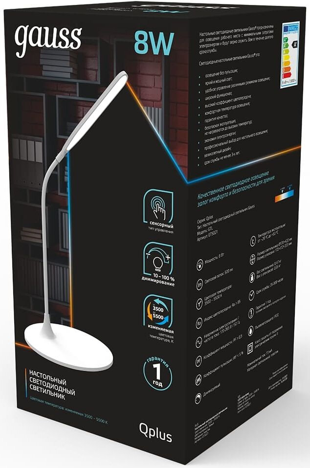 Настольная лампа Gauss Qplus GTL502 8W 500lm 3500-5500K 170-265V белый диммируемый LED 1/12