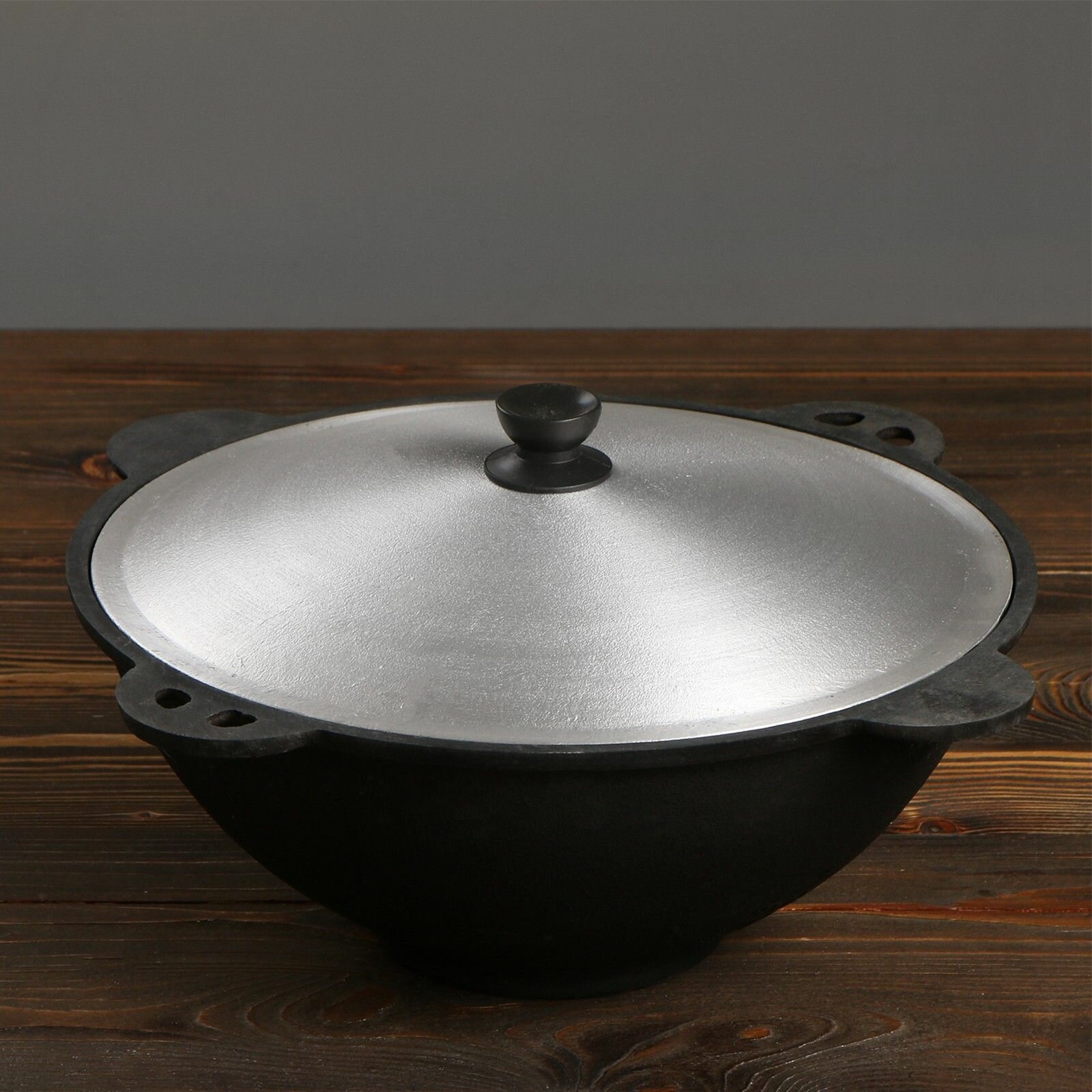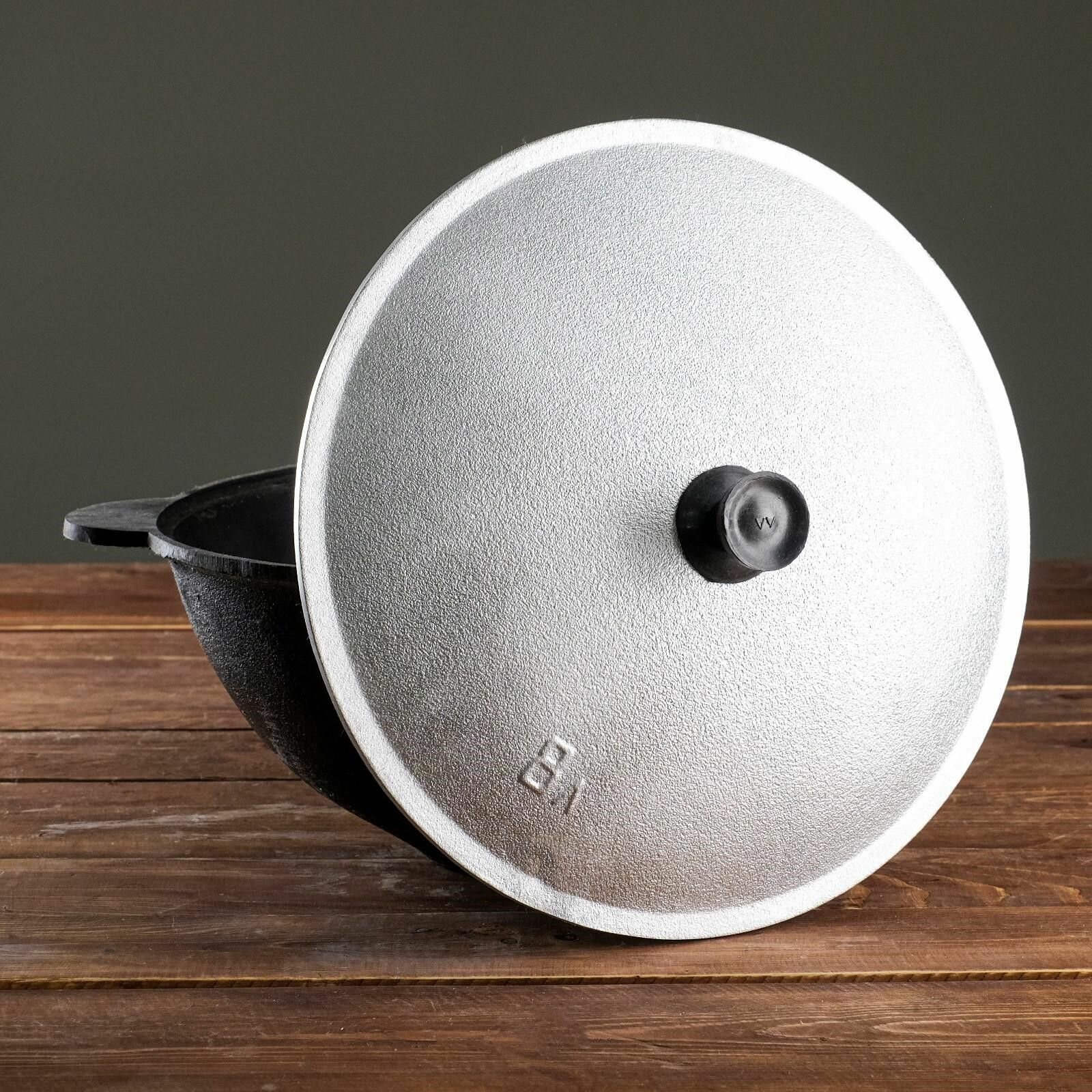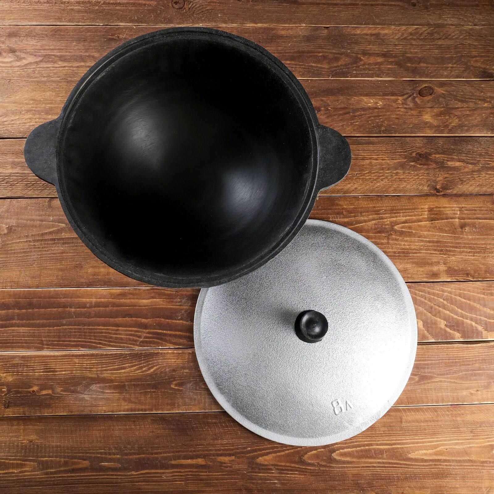 Казан чугунный, 8 л, плоское дно, алюминиевая крышка