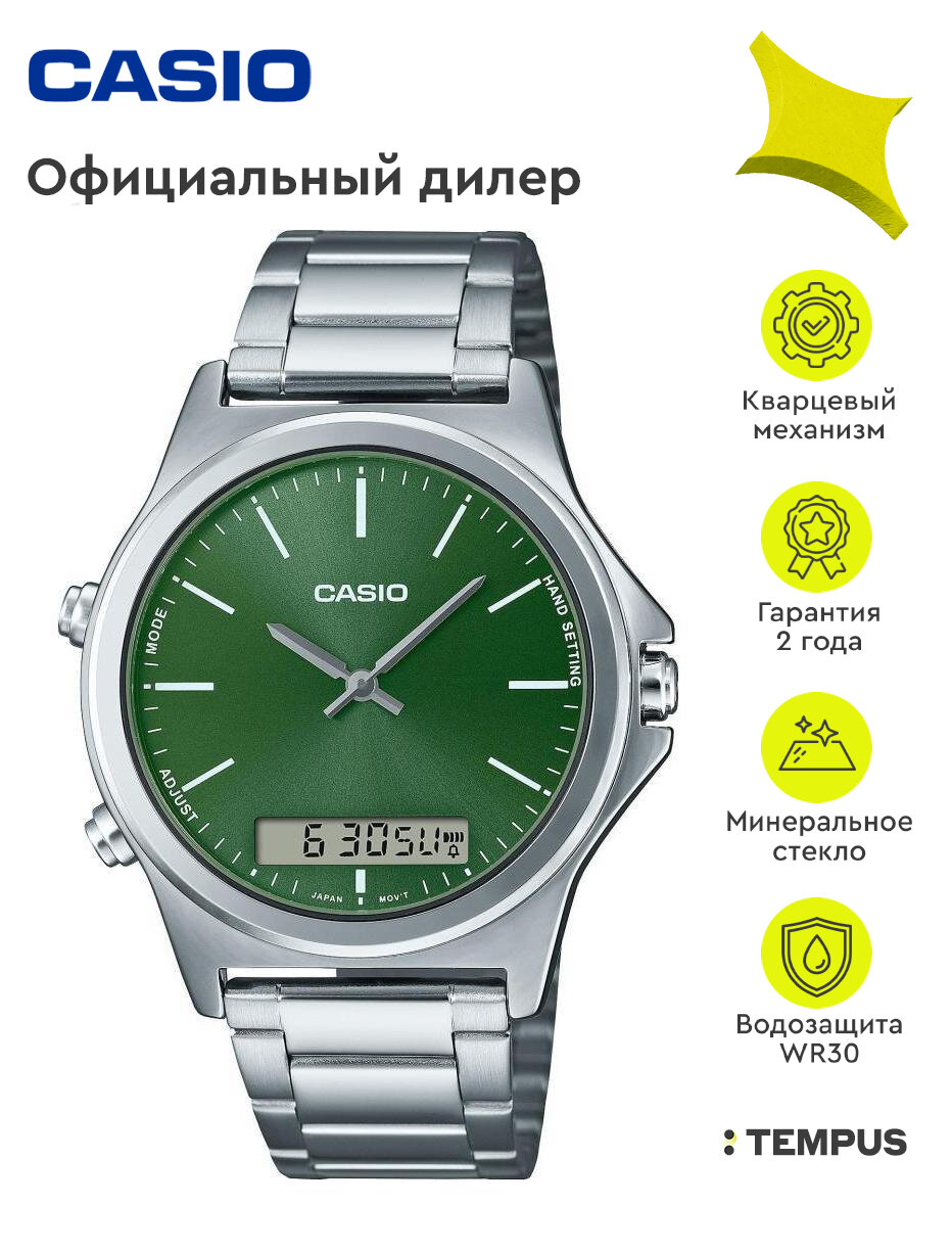 Наручные часы CASIO Collection MTP-VC01D-3E, зеленый, серебряный