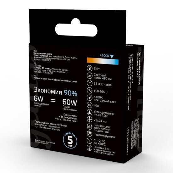 Набор из 10 штук Лампа Gauss GX53 6W 490lm 4100K LED 1/10/100 интересное: