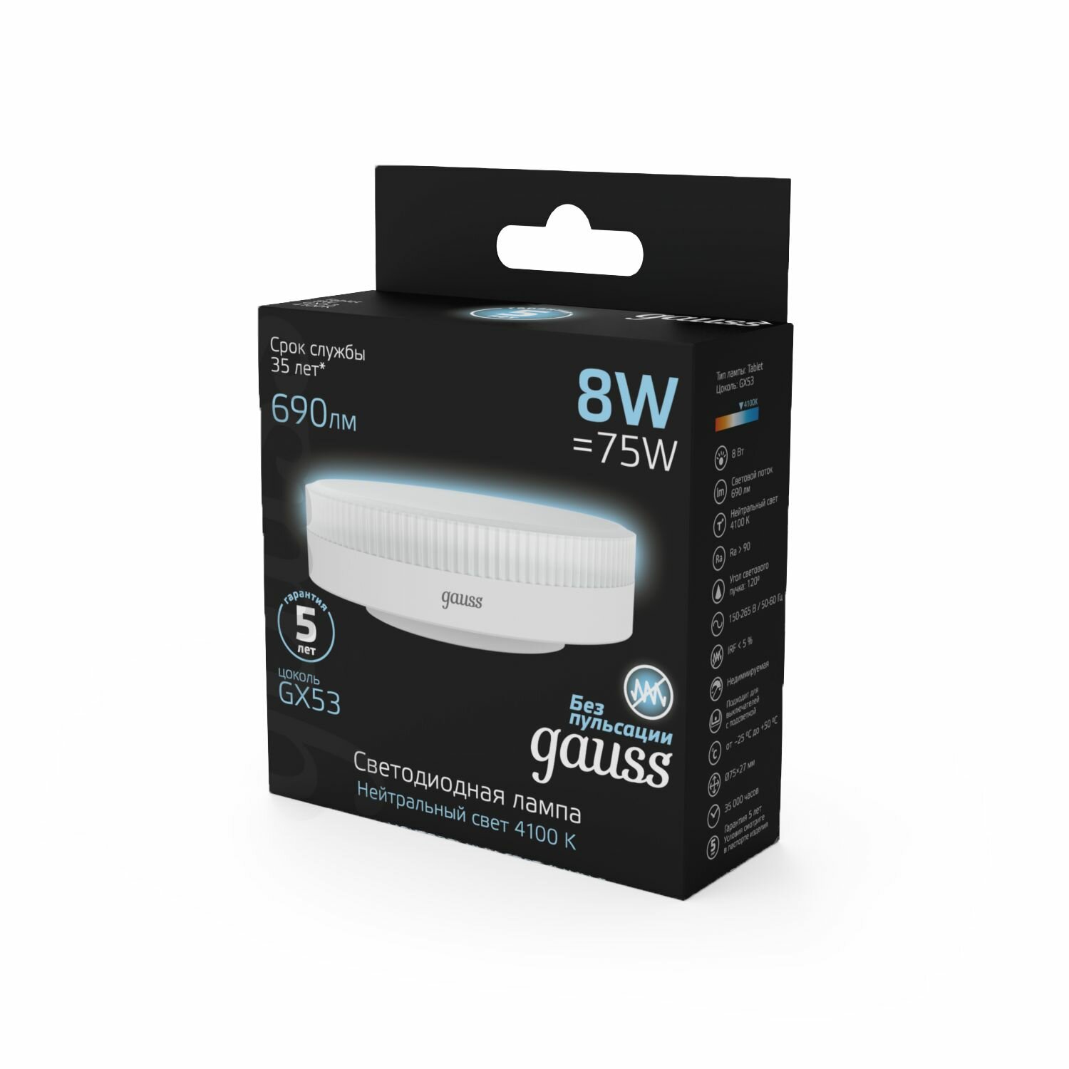 Лампа Gauss GX53 8W 690lm 4100K LED