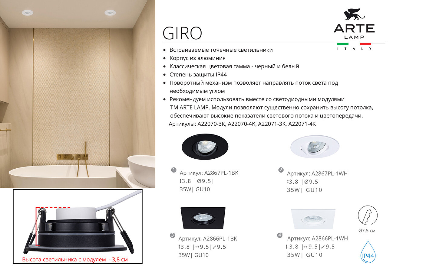 Ниже Вы можете прочитать отзывы на Точечный встраиваемый светильник Arte Lamp GIRO A2866PL-1BK GU10 чёрный, ознакомится с подробными характеристиками, посмотреть интересные обзоры и фотографии на Точечный встраиваемый светильник Arte Lamp GIRO A2866PL-1BK GU10 чёрный.