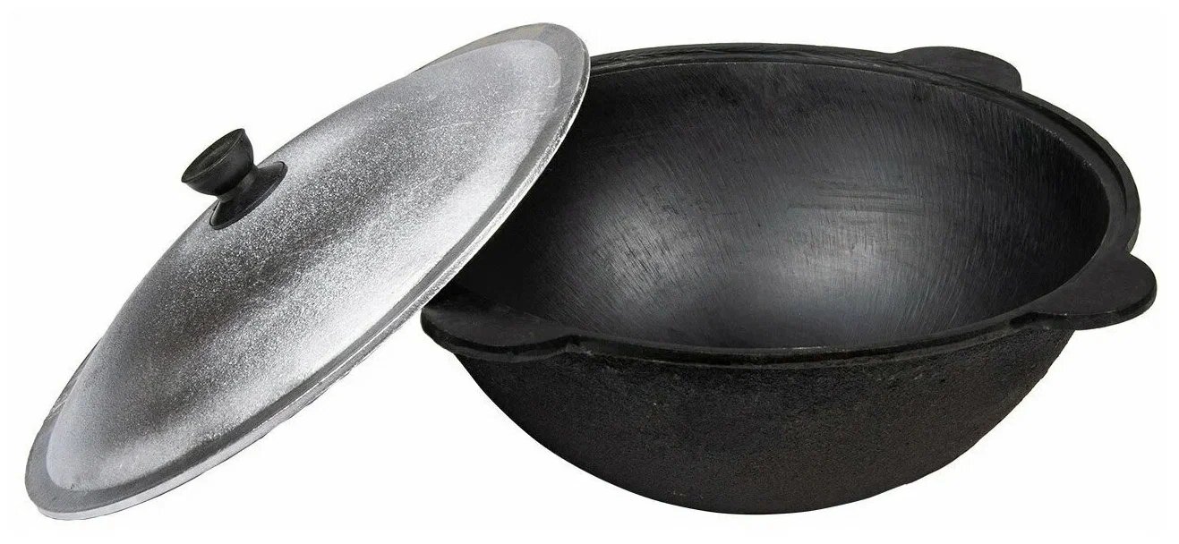 Казан Узбекский чугунный 4,5 литра (плоское дно) с алюминиевой крышкой