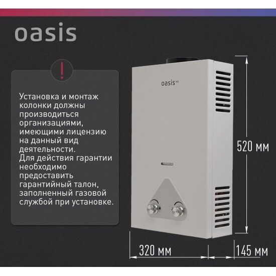 Газовый проточный водонагреватель OASIS " Eco"20 кВт(б) 4670004375297