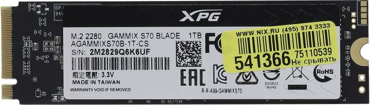 Накопитель SSD 1Tb ADATA XPG Blade S70 (AGAMMIXS70B-1T-CS)