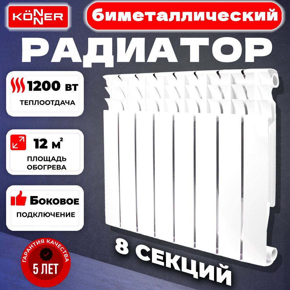 Купить Радиатор отопления биметаллический (батарея) KONNER Bimetal 100/500, 8 секций