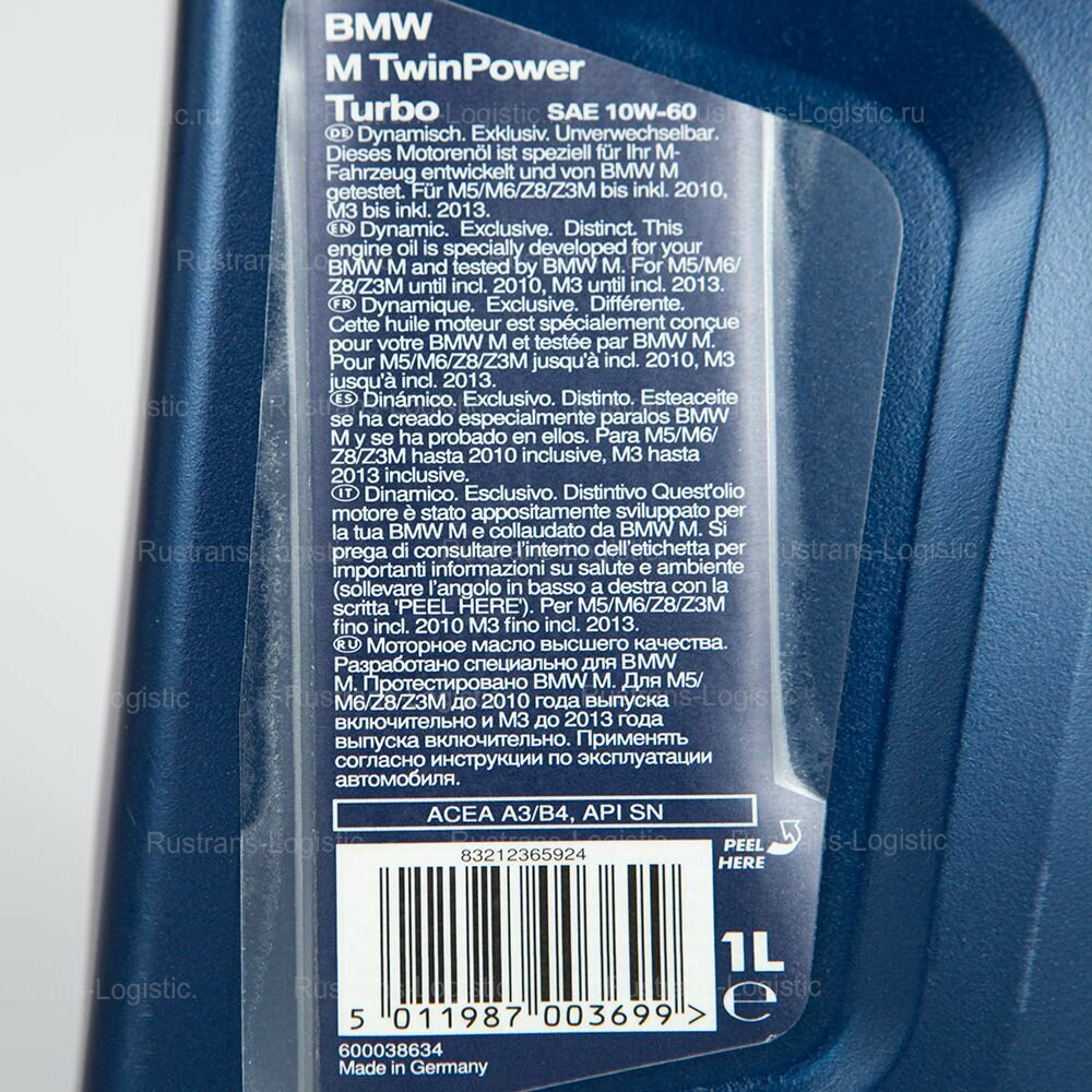 BMW Oe Bmw 10w60 1l Масло Моторное M Twinpower Turboacea: A3/B4, Для M5/M6/Z8 До 2010г. Для M3 До 2013г