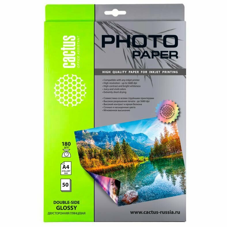 Фотобумага Cactus CS-GA418050DS A4/180г/м2/50л. глянцевая для струйной печати двусторонняя