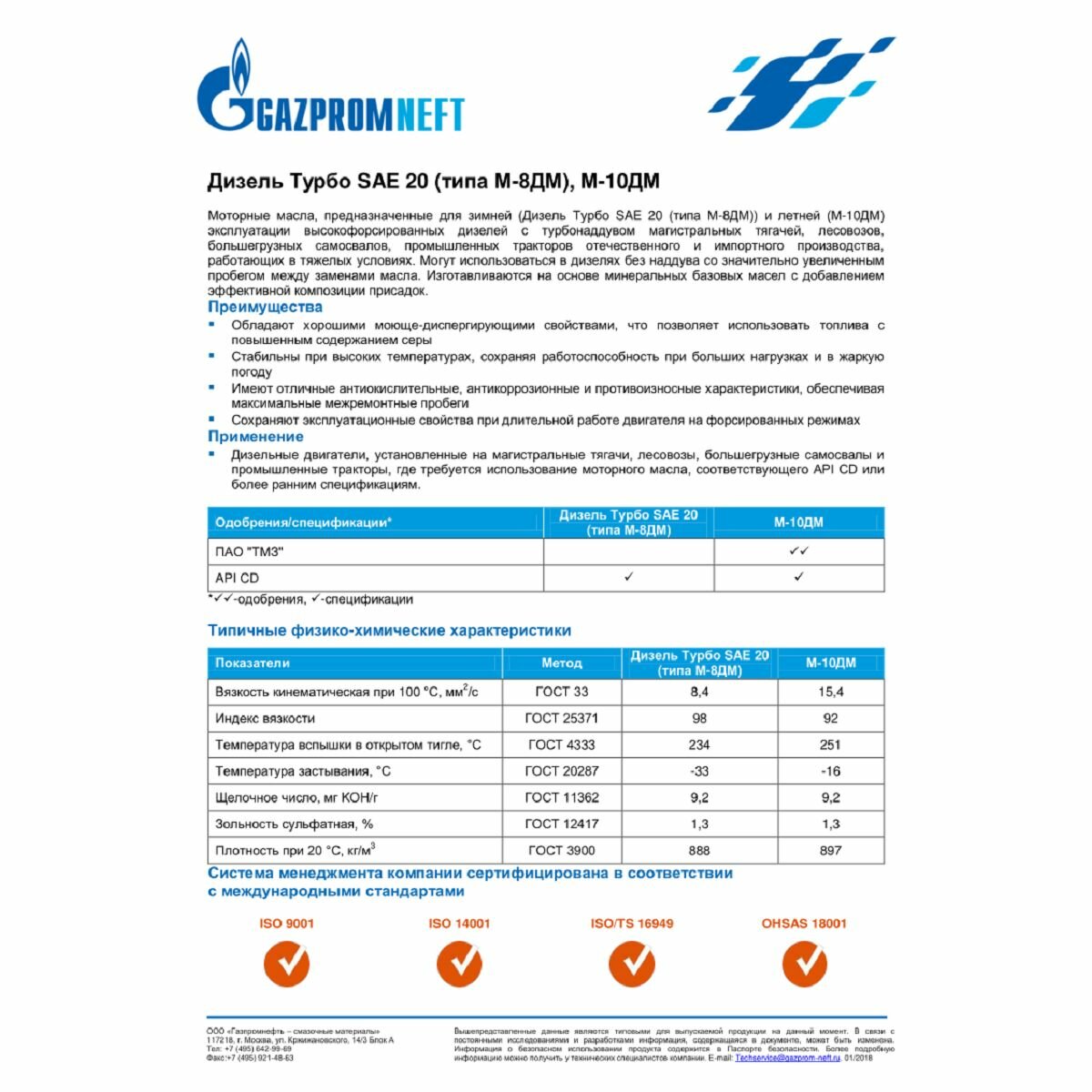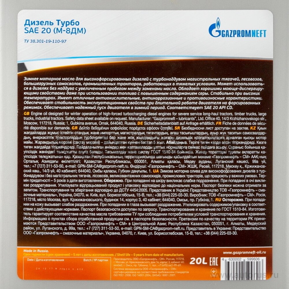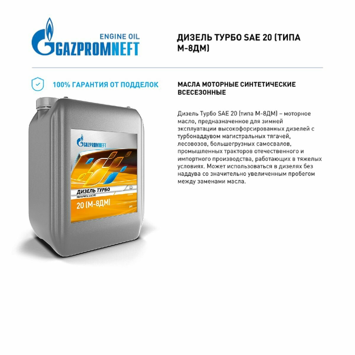 Масло gazpromneft дизельтурбо sae20 м-8дм 20л sale