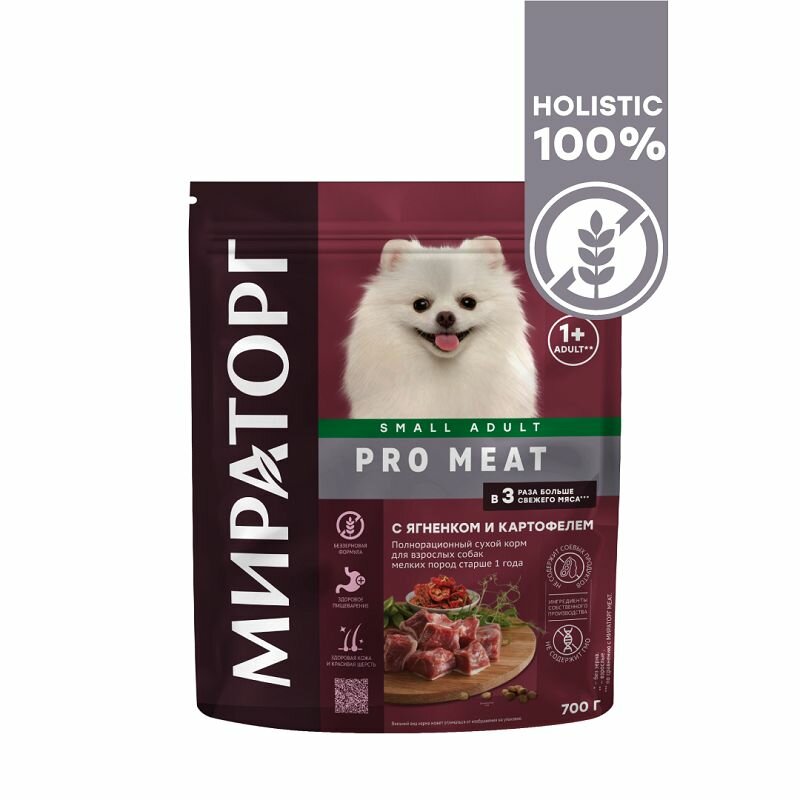 Мираторг Pro Meat 700 г сухой корм для взрослых собак мелких пород старше 1 года с ягненком и картофелем 1 шт