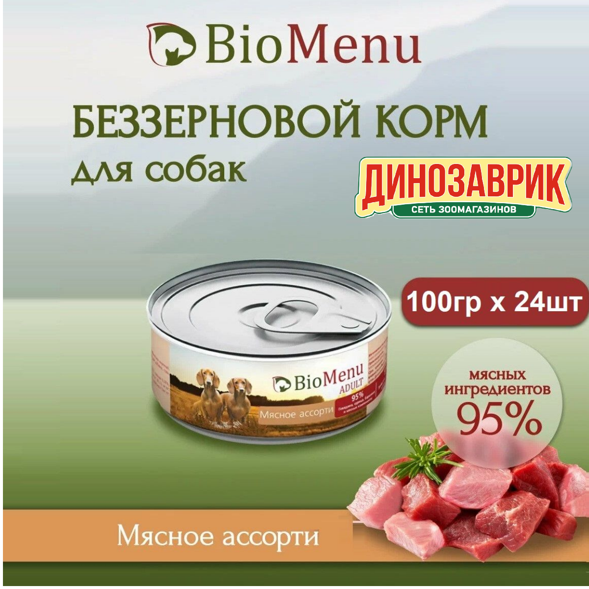 Biomenu Adult Консервы для Собак Мясное Ассорти 95%-Мясо 24х100г