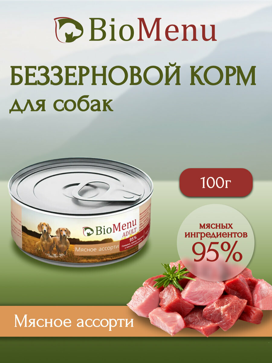 BioMenu Консервированный корм для собак, Мясное ассорти, 100 гр