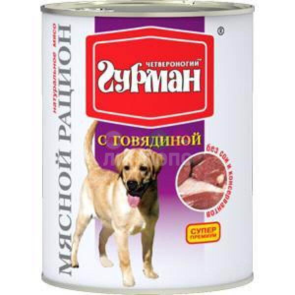 Четвероногий Гурман Консервы для собак Мясной рацион с говядиной 104113003, 0,850 кг