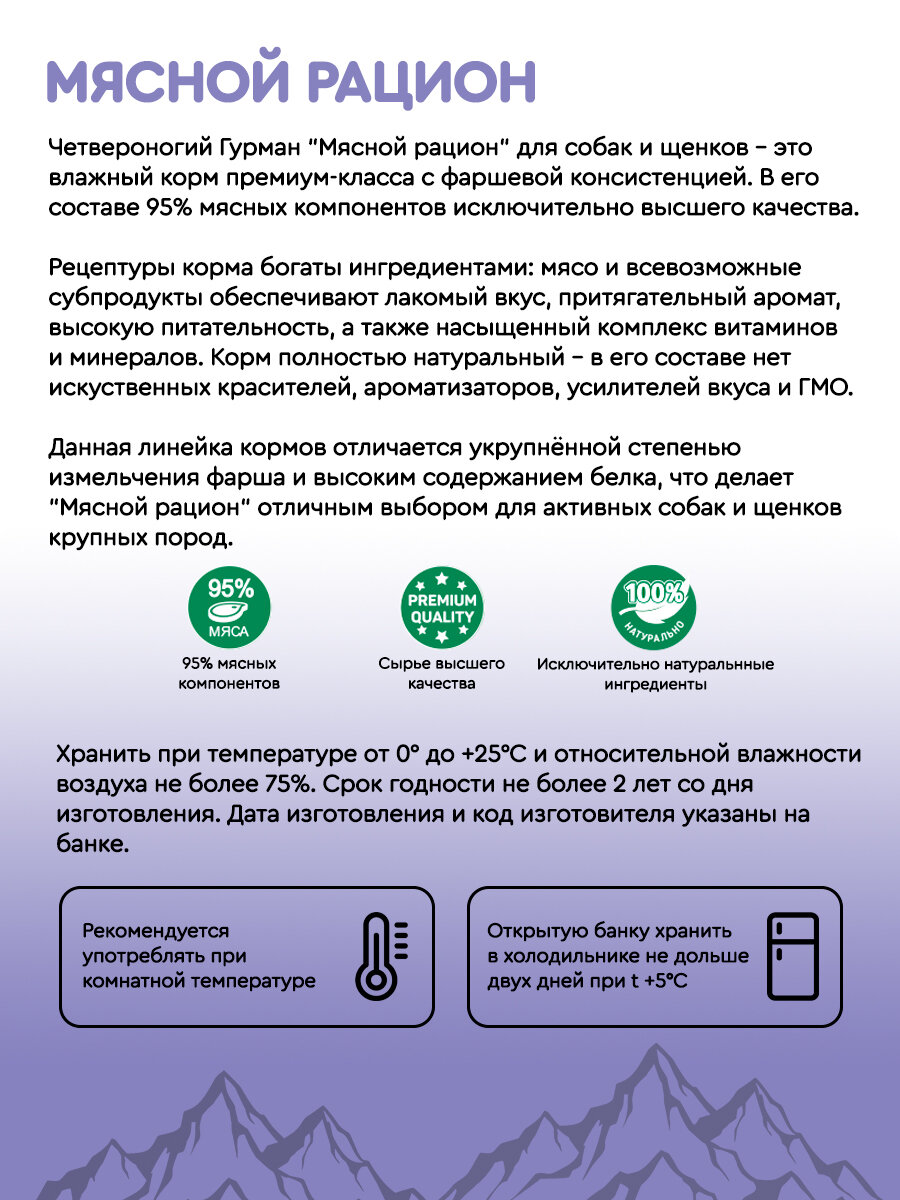 Четвероногий Гурман Мясной рацион консервированный корм премиум класса с сердцем для собак - 850 г (6 шт)