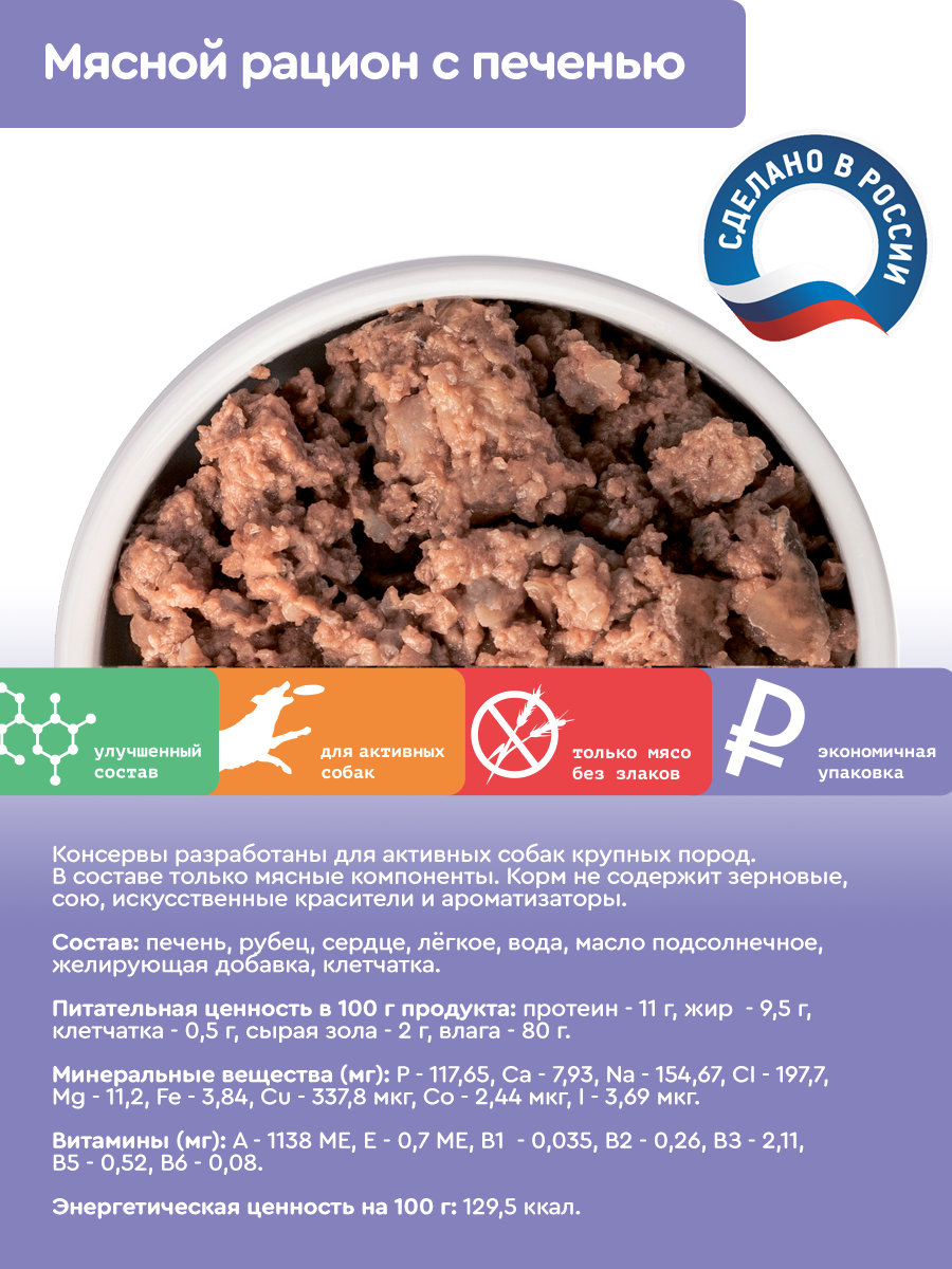 Влажный корм для собак Четвероногий Гурман Мясной Рацион с сердцем, 850г х 6шт