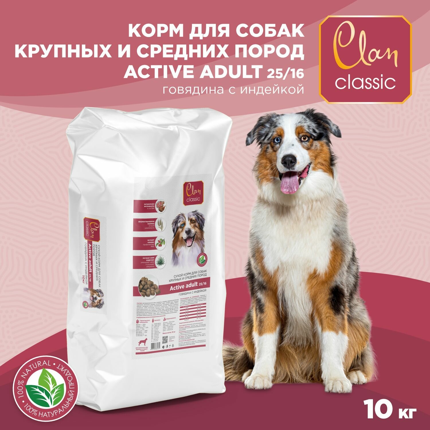 Clan Classic Active 25/16 - Сухой корм для активных собак средних и крупных пород, говядина /индейка (10кг)