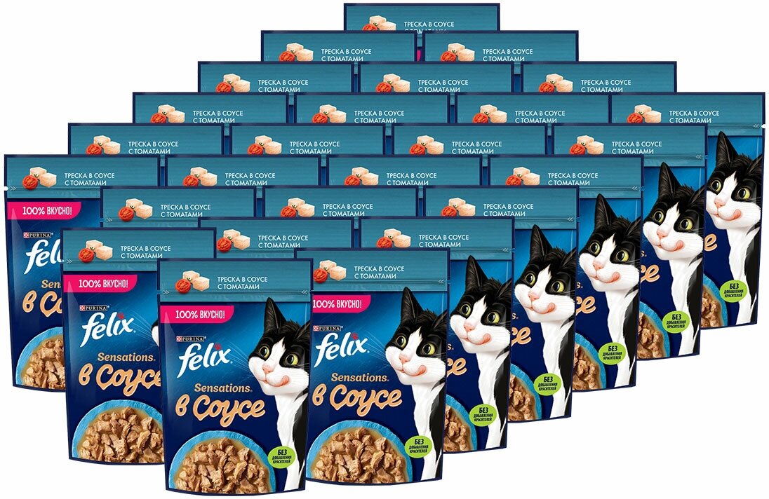 Купить FELIX SENSATIONS для взрослых кошек с треской в соусе с томатами (75 гр х 26 шт)