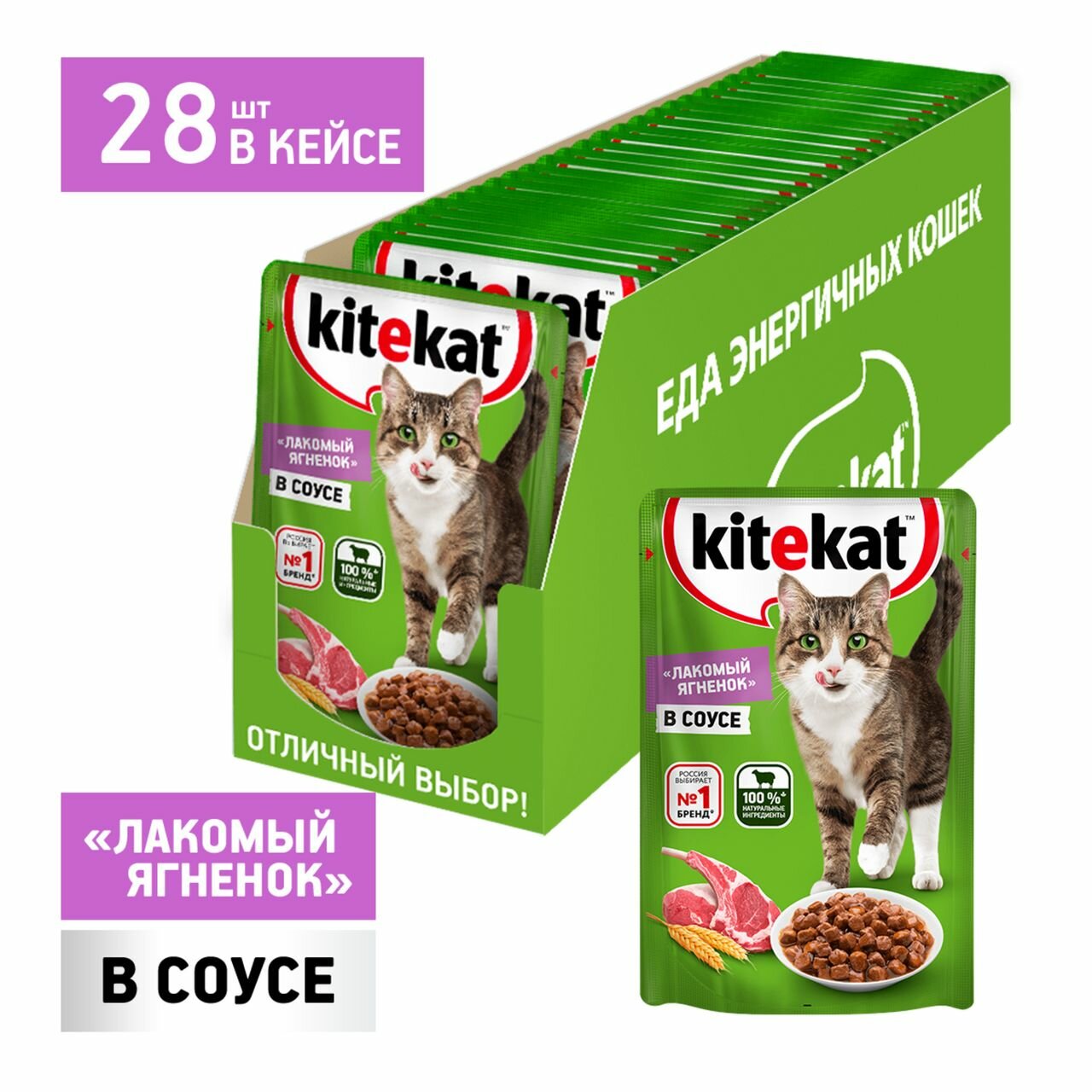 Купить Корм влажный Kitekat соус для взрослых кошек с ягненком, 85г x 28 шт