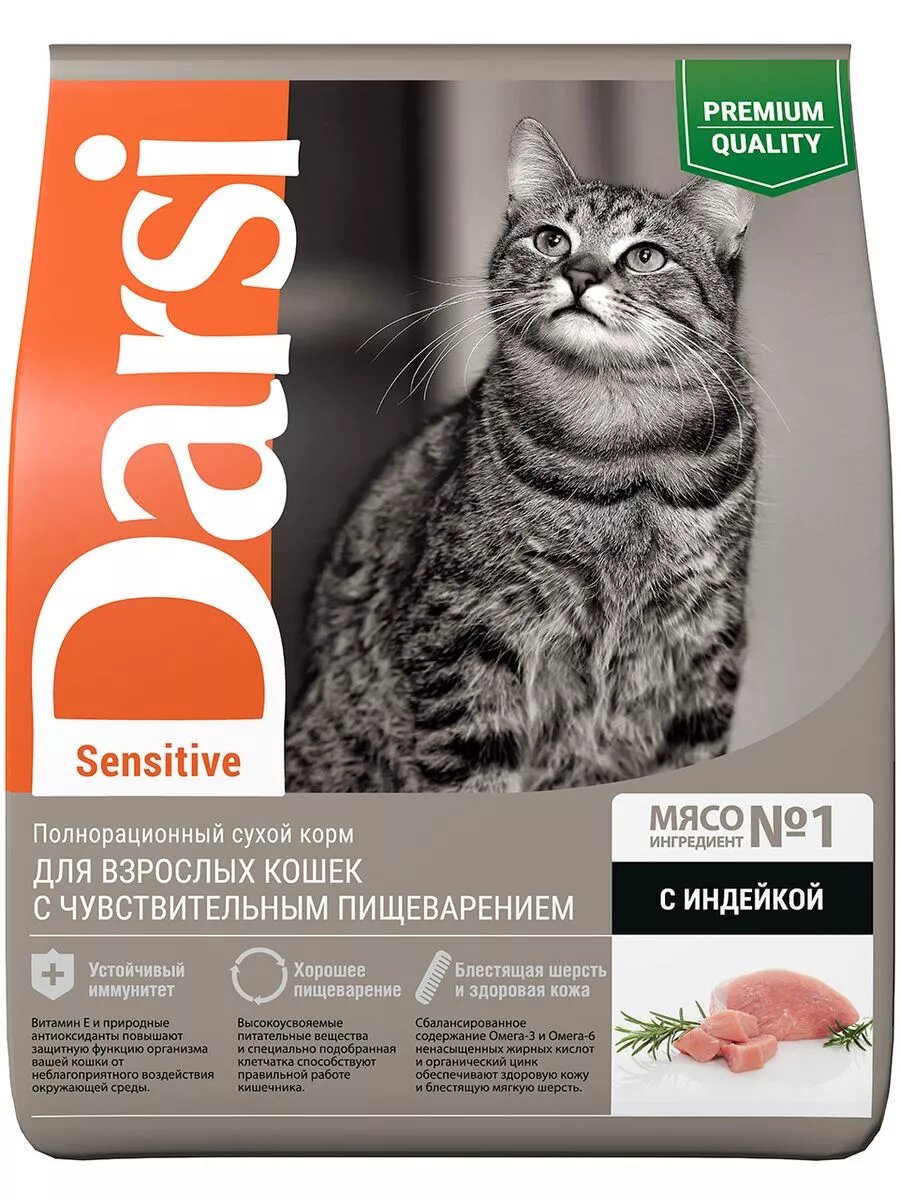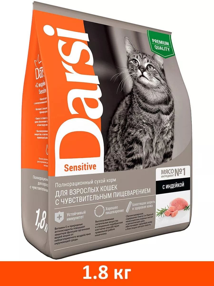 Сухой корм DARSI Sensitive для кошек с чувствительным пищеварением, с индейкой, 1,8кг