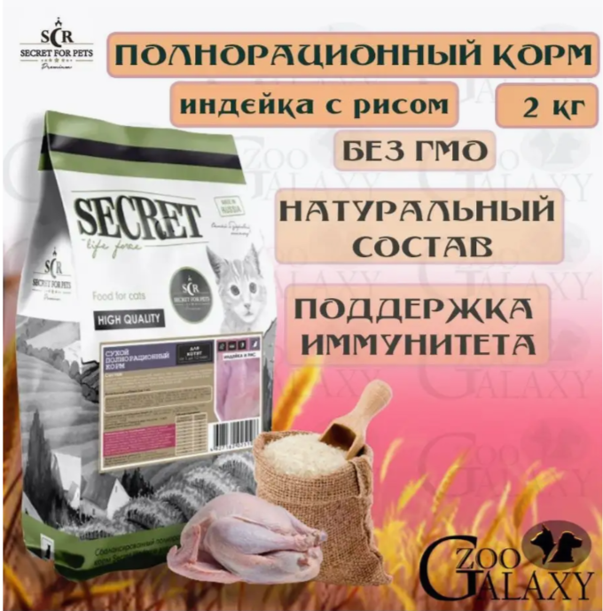SECRET FOR PETS Корм сухой для котят всех пород, индейка и рис, 2 кг