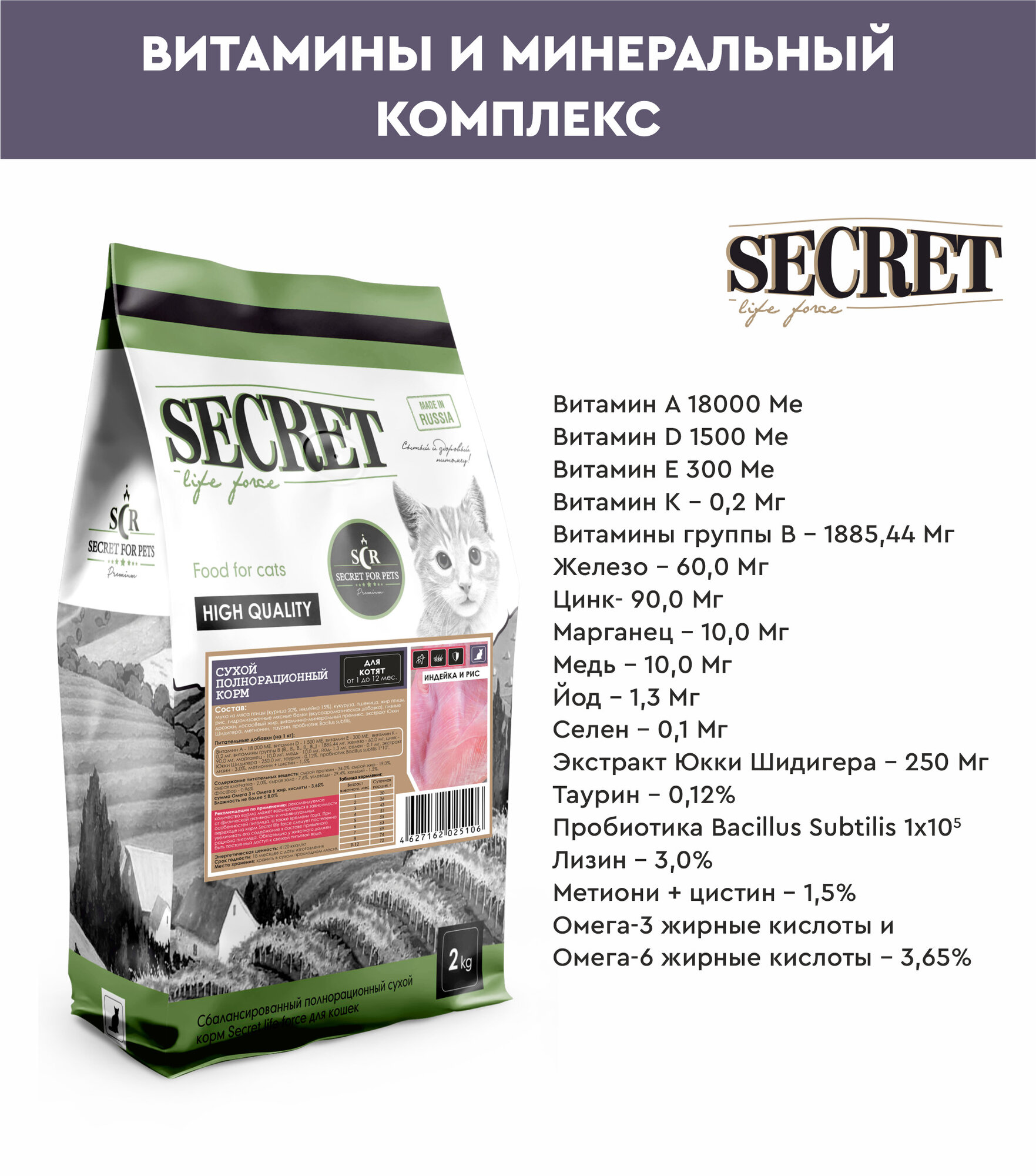 SECRET LIFE FORCE для котят с индейкой и рисом (2 кг)