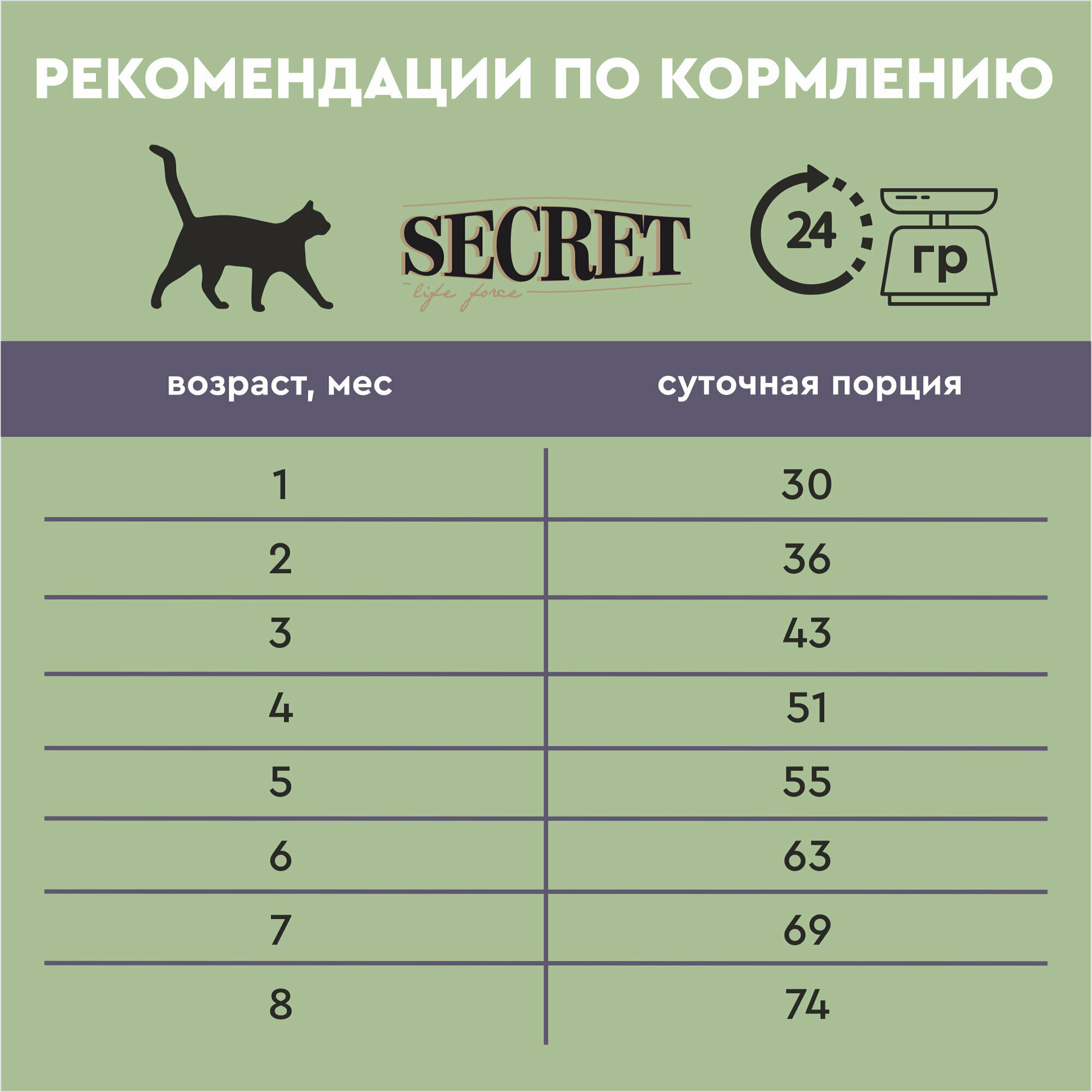 | Дозировка | необходимое количество сухого корма, соответствующего весу кошки, посмотрите в таблице на упаковке производителя. Одновременно с подачей корма обеспечьте достаточное количество свежей воды |