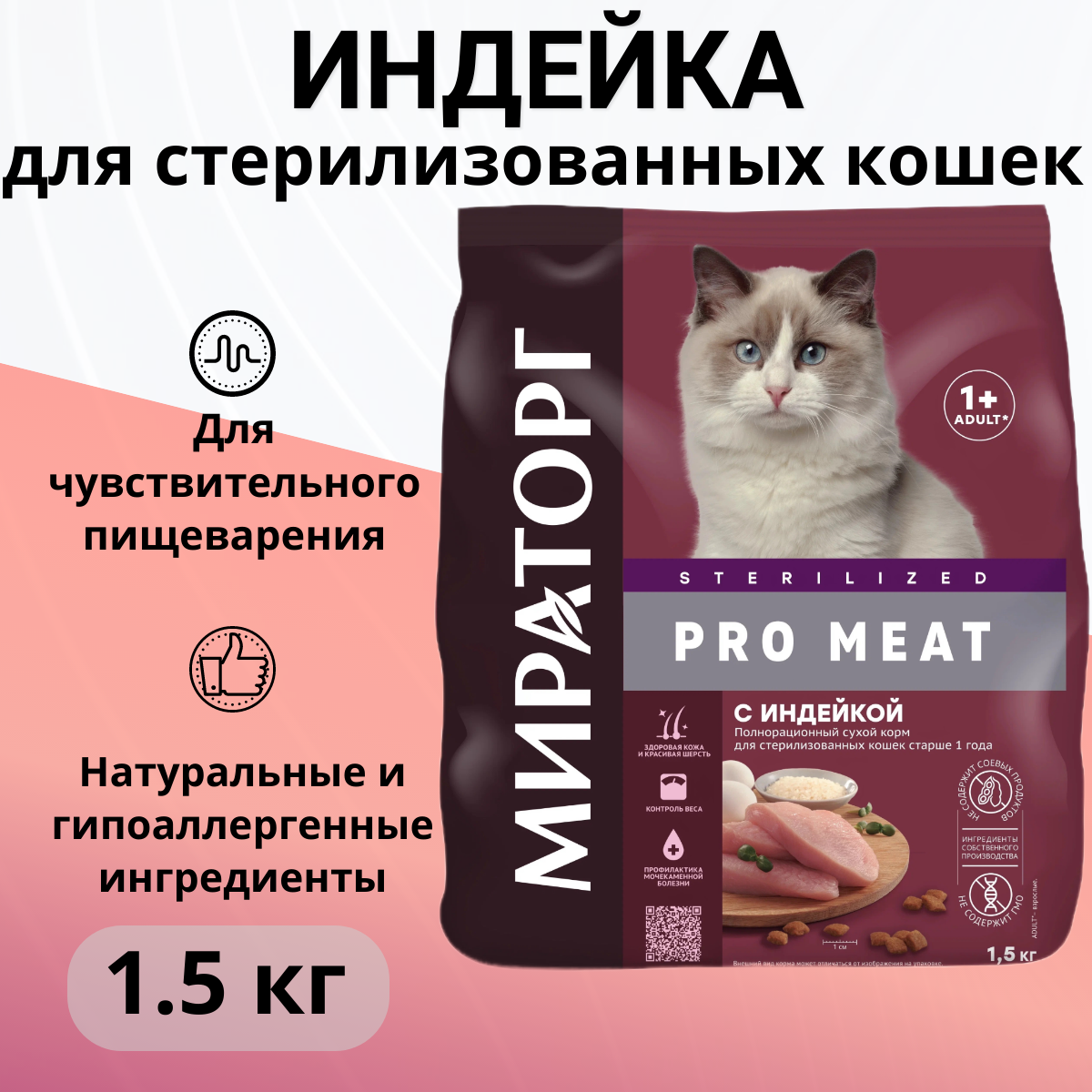 Купить Полнорационный Сухой Корм Для Стерилизованных Кошек мираторг Pro Meat С Индейкой, 1,5 кг