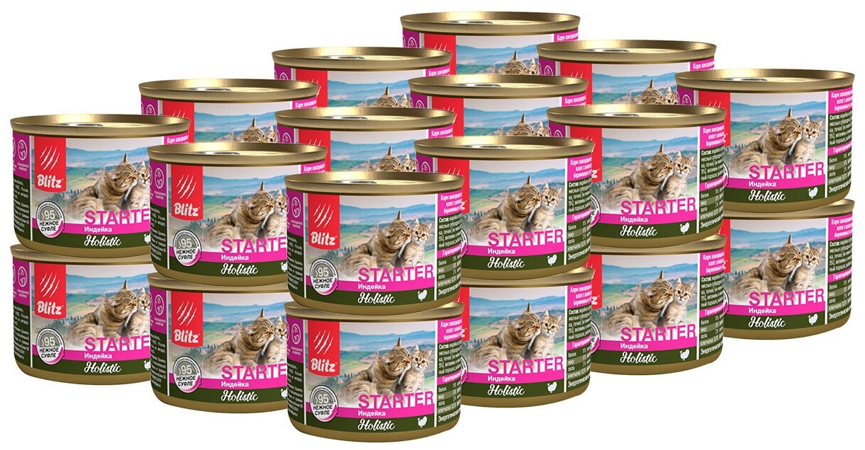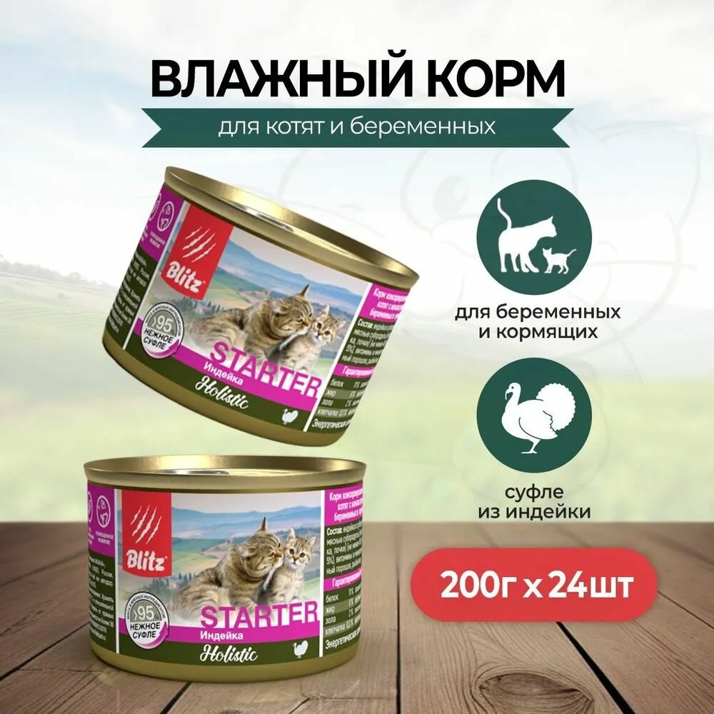 Купить BLITZ Starter Консервы для котят, беременных и кормящих кошек с индейкой нежное суфле 24х200гр