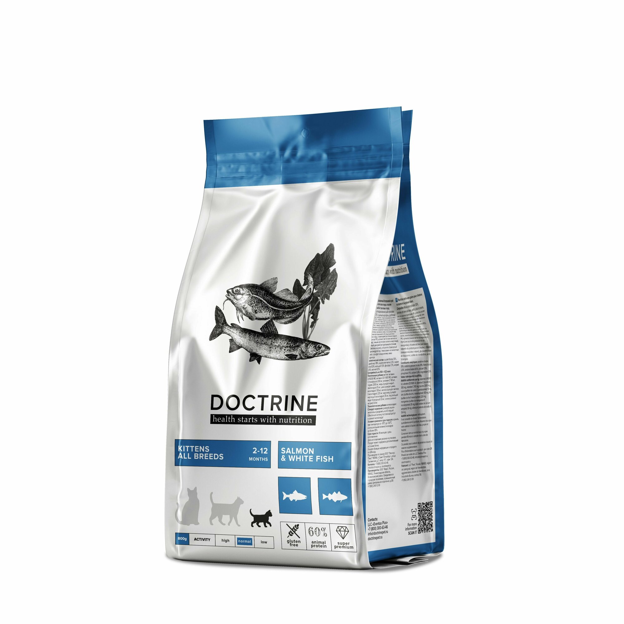 Корм для котят сухой DOCTRINE с лососем и белой рыбой тресковых пород 800г