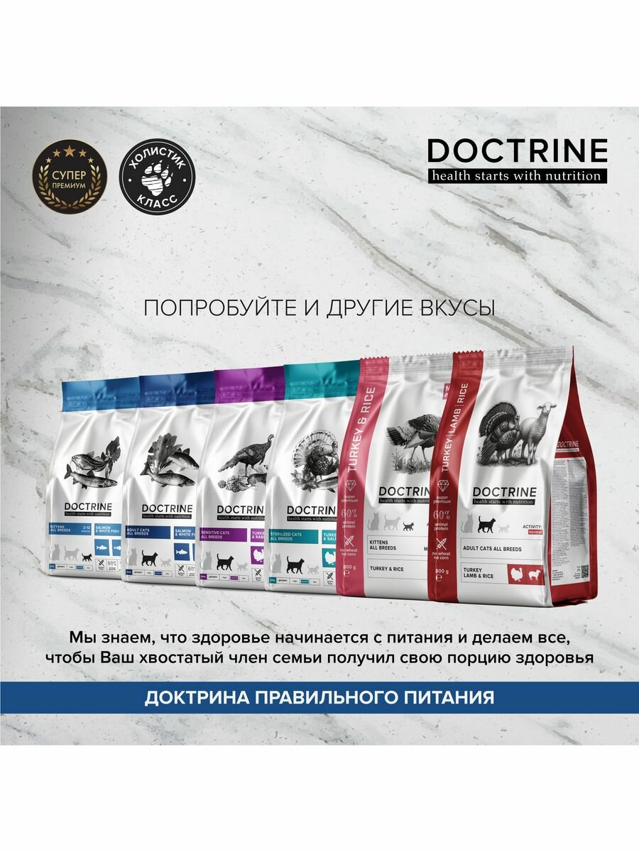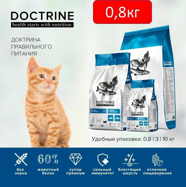 Сухой корм для котят Беззерновой DOCTRINE с лососем и белой рыбой 800г / доктрин, доктрина