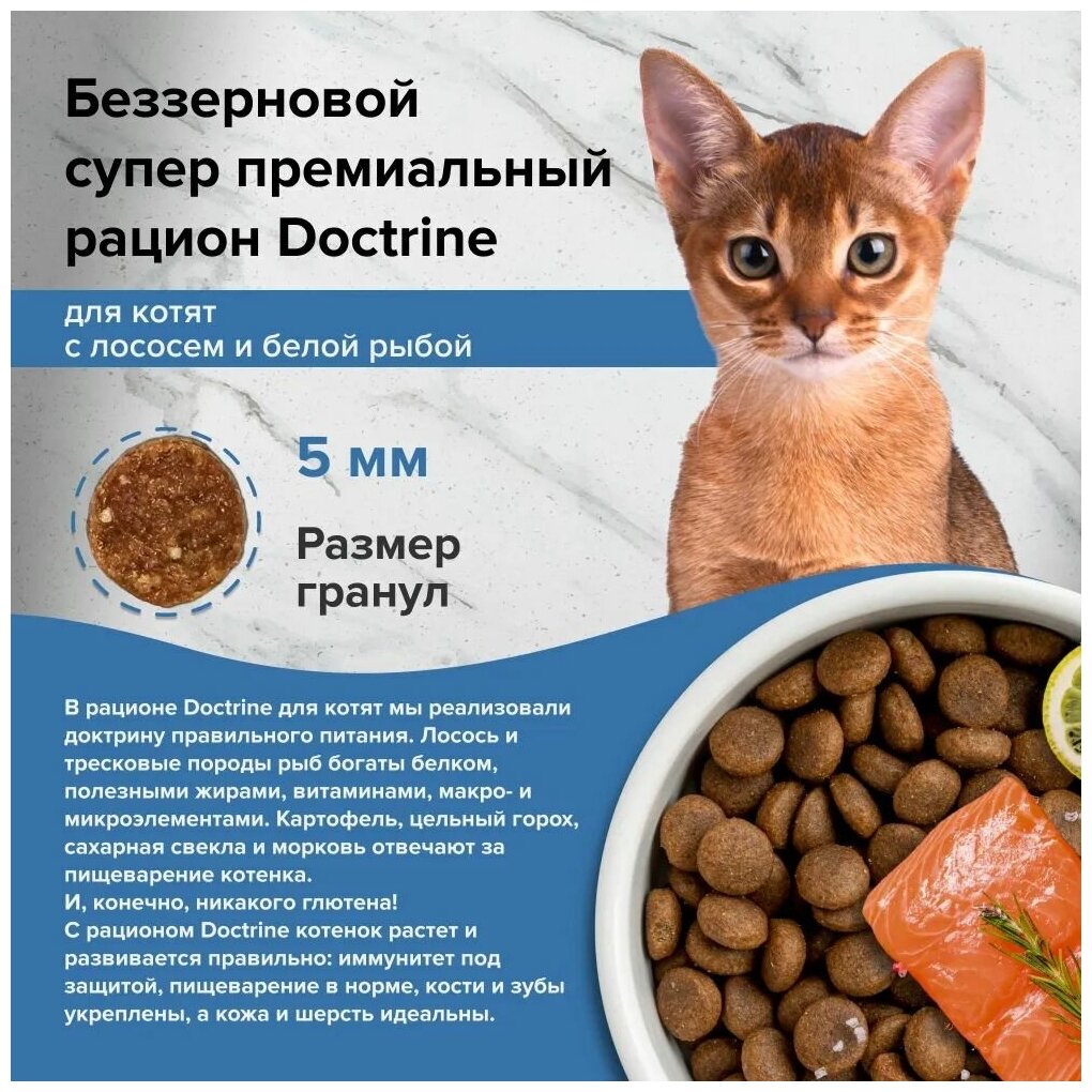 Сухой корм для котят Беззерновой DOCTRINE с лососем и белой рыбой 3кг / доктрин, доктрина