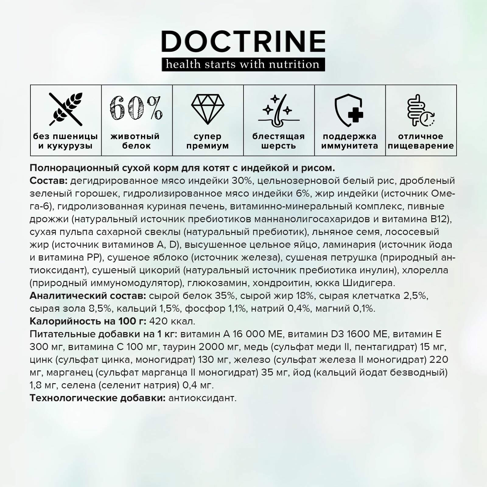 DOCTRINE - Сухой корм для для котят с индейкой и рисом, 800 г