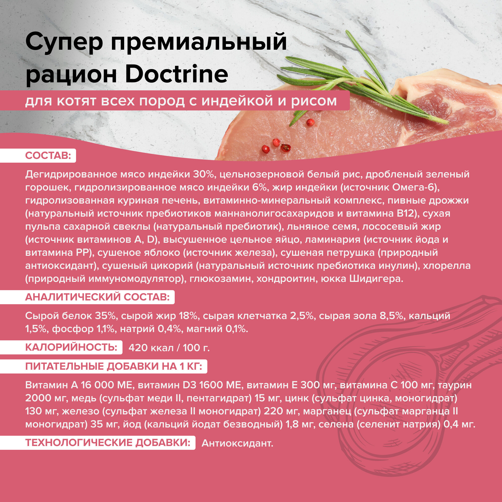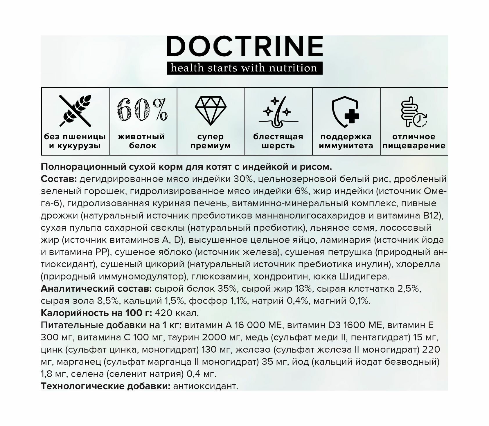 DOCTRINE - Сухой корм для для котят с индейкой и рисом, 800 г