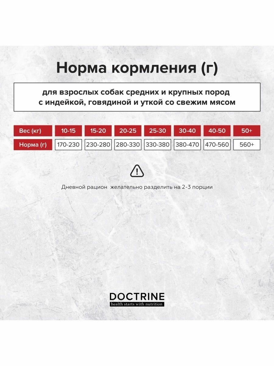Купить Doctrine - Полнорационный сухой корм для взрослых собак средних и крупных пород, с Индейкой, Говядиной и Уткой (12 кг)