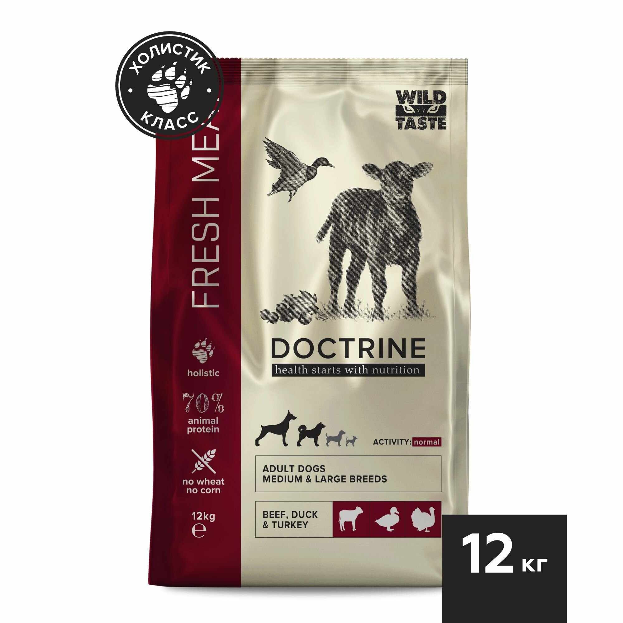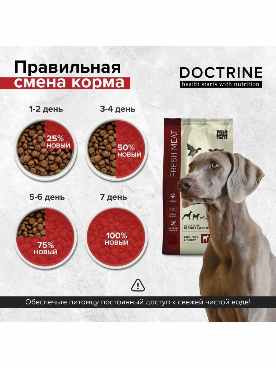 DOCTRINE корм для средних и крупных собак с Индейкой, Говядиной и Уткой, свежее мясо, 3 кг (FRESH MEAT)