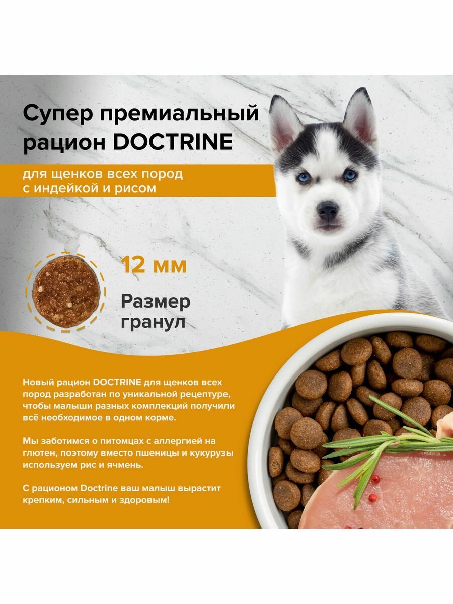 Корм сухой Doctrine полнорационный для щенков всех пород, с индейкой и рисом, 18 кг