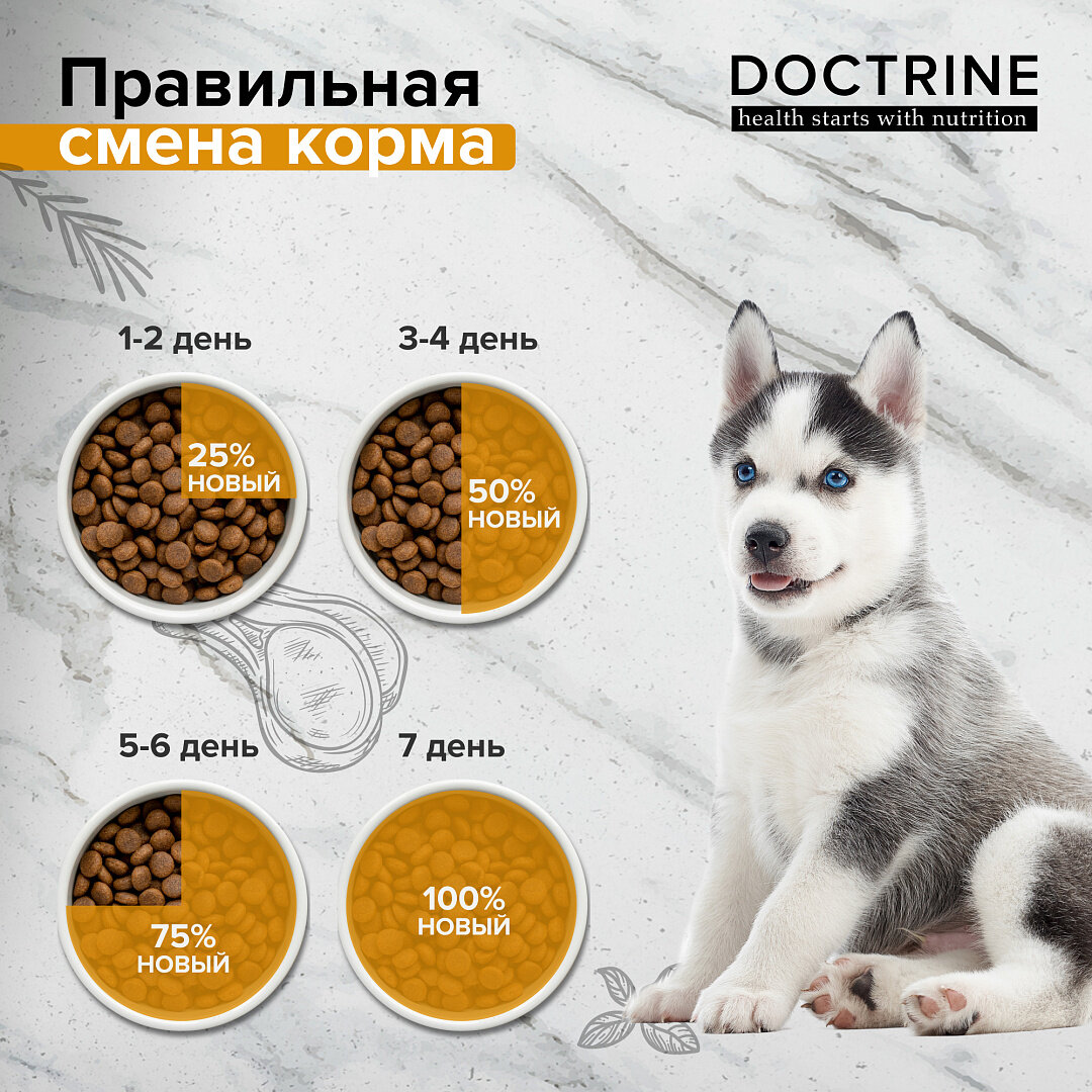 Корм сухой Doctrine полнорационный для щенков всех пород, с индейкой и рисом, 18 кг