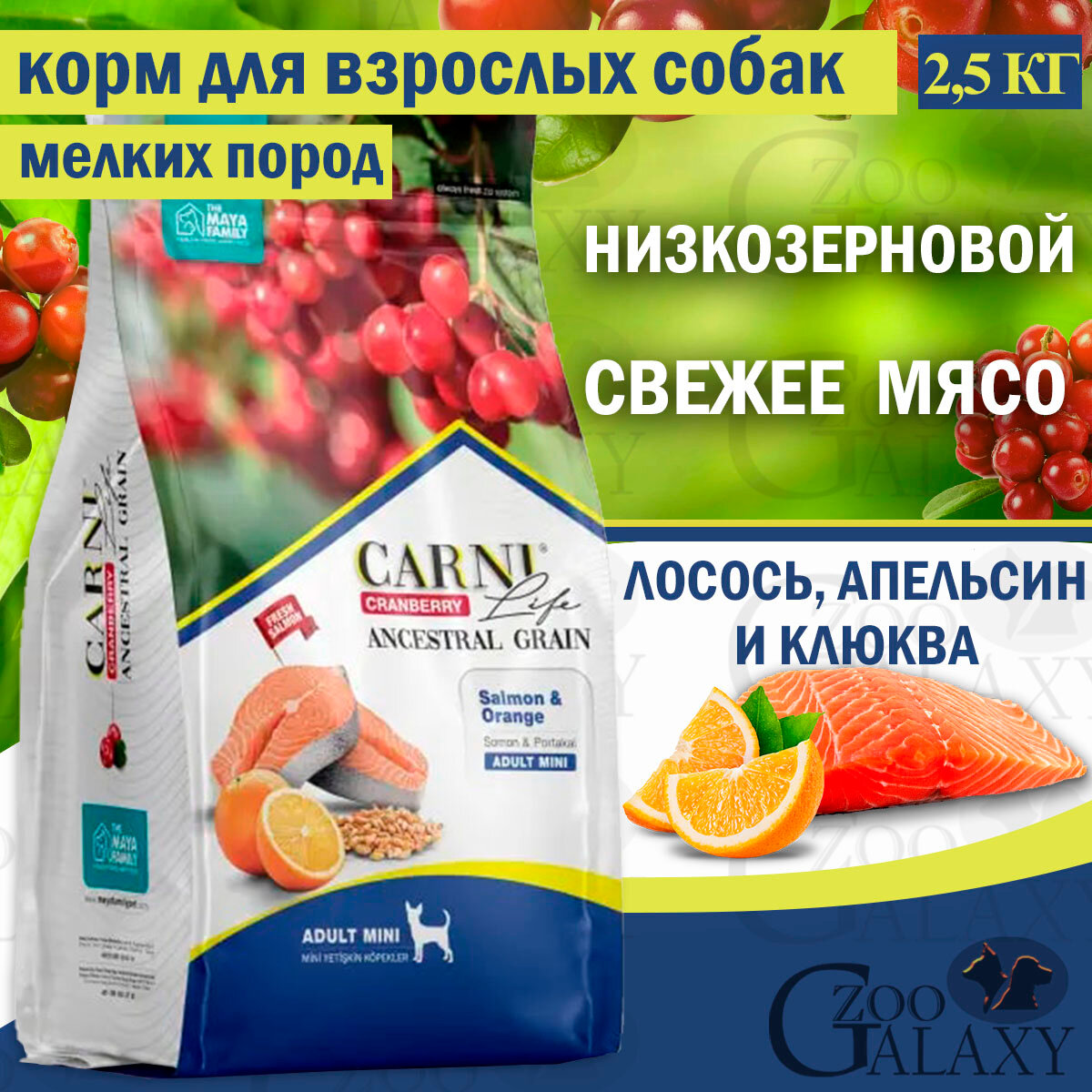 Купить Корм для собак мелких сухой CARNI Life Лосось с апельсином и клюквой, 2.5кг
