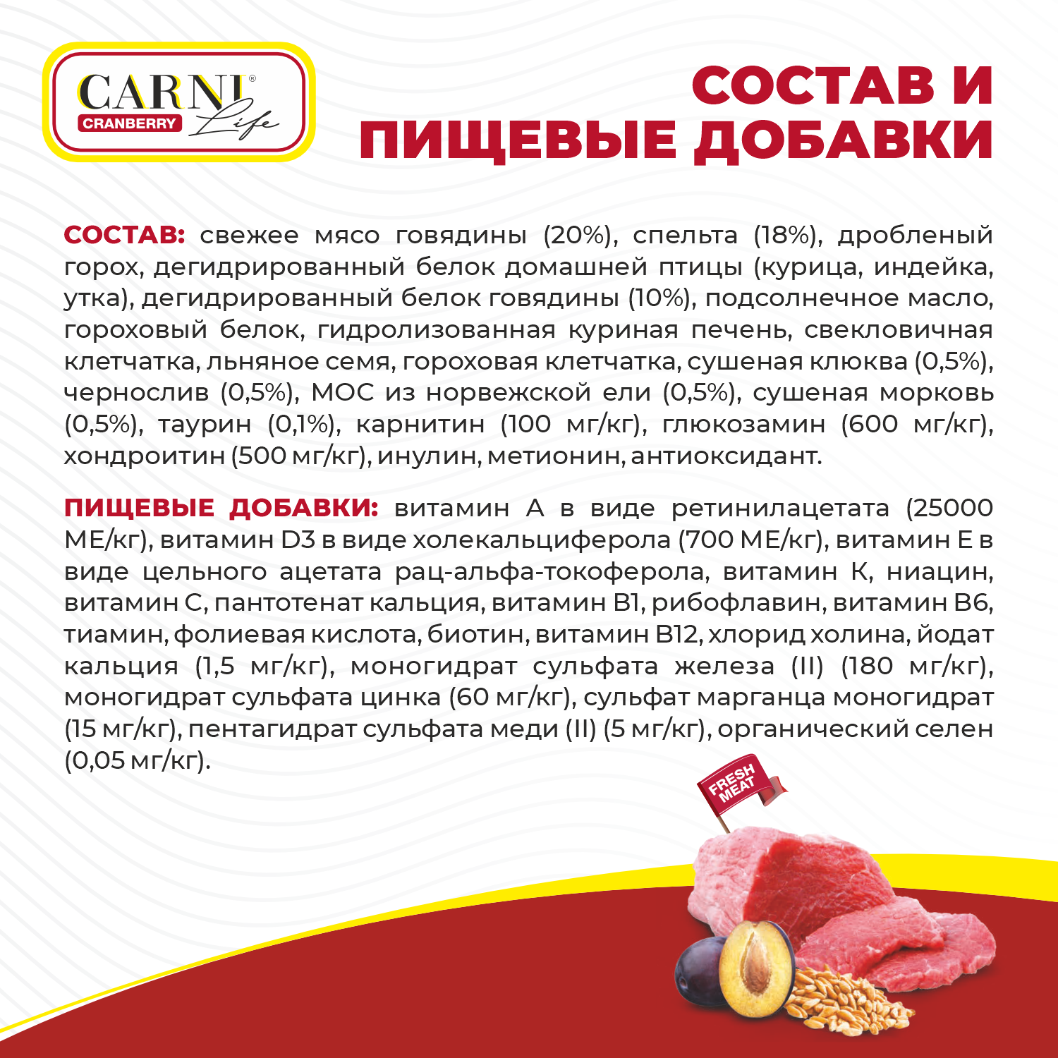СохранитьКорм для собак мелких сухой CARNI Life Говядина с черносливом и клюквой, 2.5кг интересное: