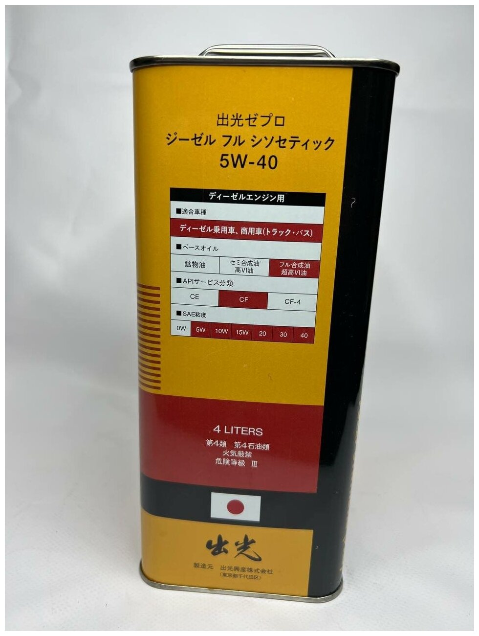 Синтетическое моторное масло IDEMITSU Zepro Diesel 5W-40, 4 л, 4 кг