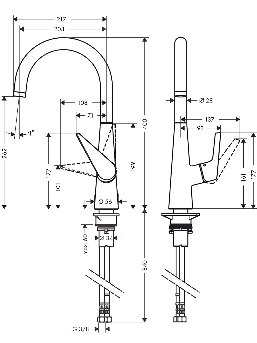 Смеситель для кухни 262 мм, 4,5 л/мин, под сталь Hansgrohe Talis M54 72816800 интересное: