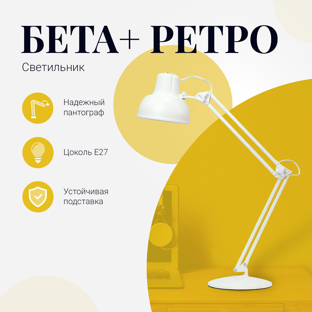 Светильник Трансвит Бета-К + на подставке Е27 60W белый