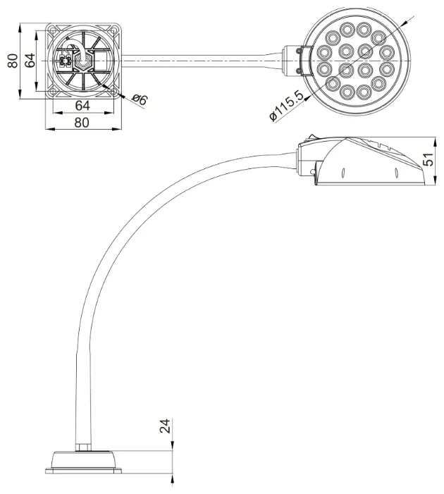 Веста С16-035 ПДБ54-7-035 (led, 7Вт 4000К, с органайзером) гибкая стойка 373 мм, черный .