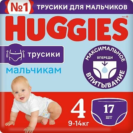 Трусики-подгузники для мальчиков Huggies, размер 4 (9-14кг), 17шт