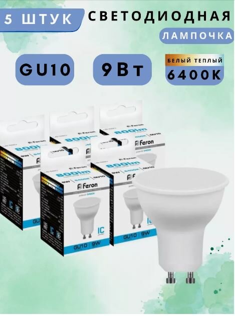 Лампа светодиодная LED 9вт 230в GU10 дневной | код 25844 | FERON (1 шт.)