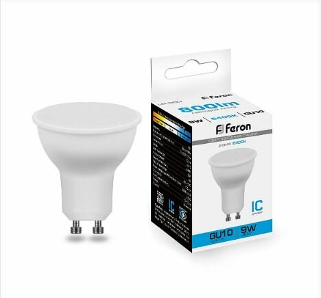 Лампа светодиодная LED 9вт 230в GU10 дневной | код 25844 | FERON (1 шт.)
