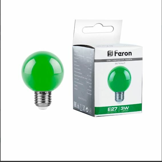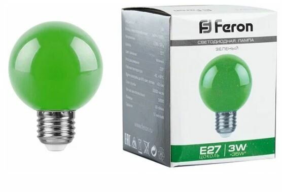 Светодиодная лампа "Feron" 3W, зеленый свет, E27