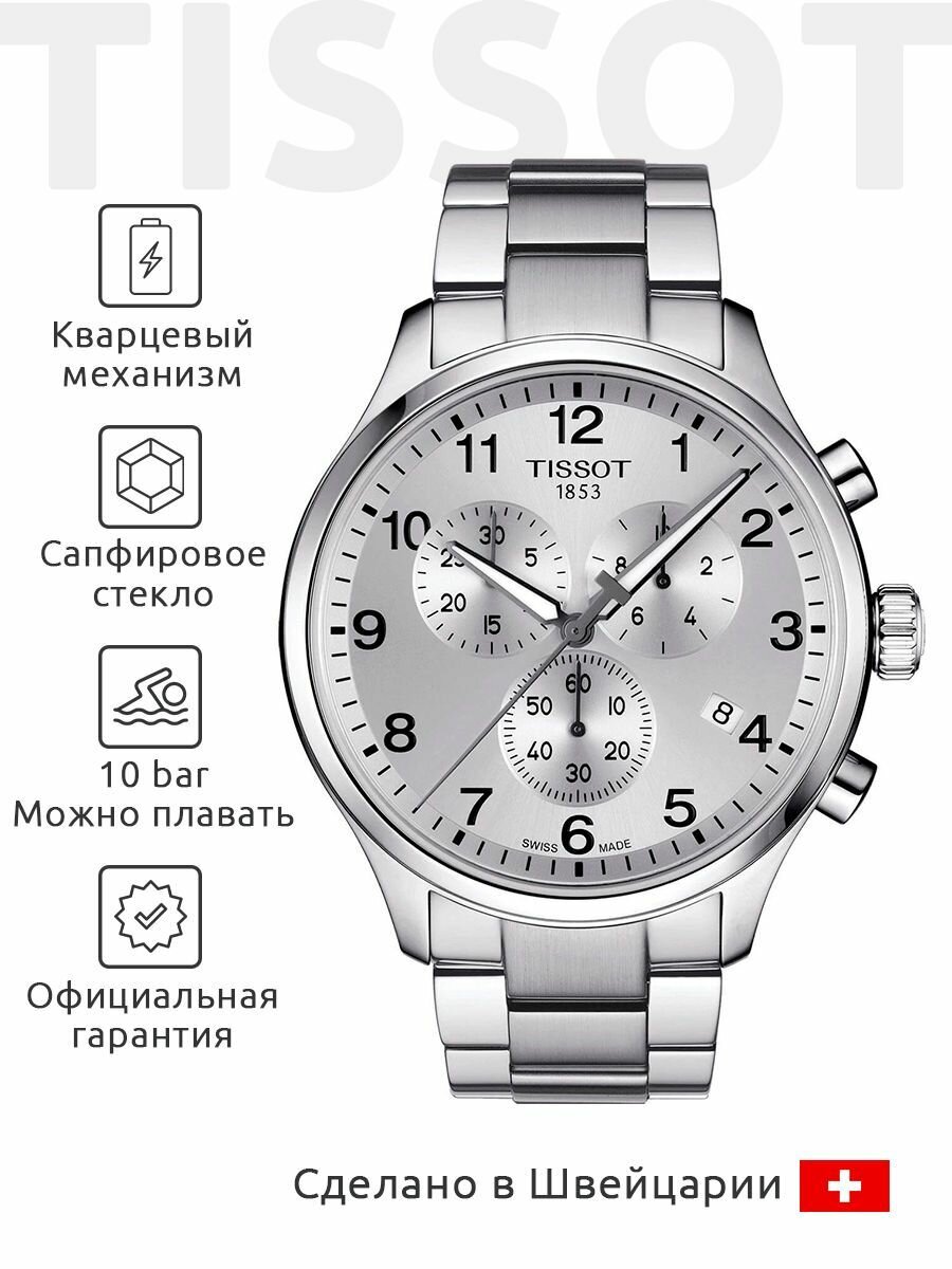 Швейцарские кварцевые часы Tissot Chrono Xl Classic T116.617.11.037.00 на стальном браслете, с водозащитой 10 бар и международной гарантией от производителя